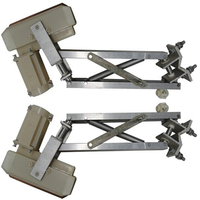 H型單極集電器是滑觸線系統(tǒng)中集電側(cè)拾取電能的主要裝置之一,它通過集電刷與導(dǎo)軌的滑動(dòng)接觸,將電能直接傳導(dǎo)至用電器,從而實(shí)現(xiàn)系統(tǒng)的移動(dòng)供電。H型單極集電器由機(jī)械結(jié)構(gòu)的張力裝置和直接與導(dǎo)軌滑動(dòng)接觸的集電刷兩部分組成,機(jī)械結(jié)構(gòu)的張力裝置決定集電刷與導(dǎo)軌的滑動(dòng)接觸壓力和機(jī)構(gòu)的穩(wěn)定性,集電刷則是導(dǎo)軌滑動(dòng)接觸拾取電能的導(dǎo)體,它的性能和導(dǎo)電質(zhì)量以及材料結(jié)構(gòu)成分的優(yōu)劣,將直接影響整個(gè)系統(tǒng)設(shè)備的安全運(yùn)行質(zhì)量,因此集電器是整個(gè)滑線系統(tǒng)中最主要的部件之一。